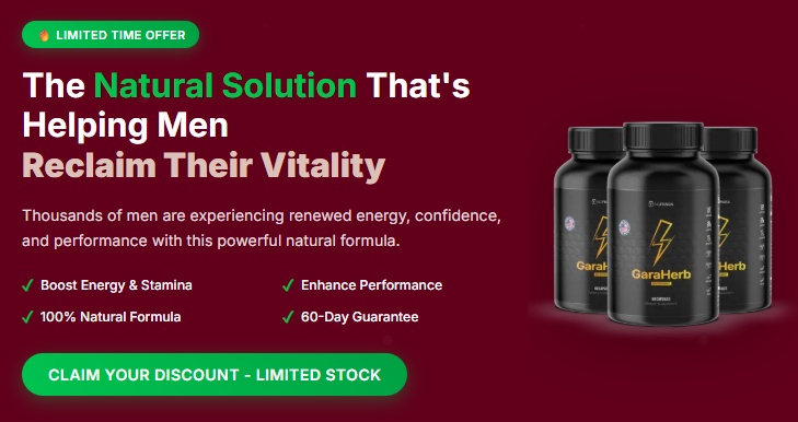 The demand for GaraHerb is surging as more men embrace this effective natural solution for renewed vigor and well-being. Each bottle blends the finest ingredients, supported by confident reviews and an iron-clad 60-day guarantee. Don’t let delays stand in the way of achieving lasting benefits. Rapidly dwindling stock and exclusive bonuses make this the smart time to secure your supply. Experience the difference with GaraHerb and unlock the vitality that so many are already enjoying.